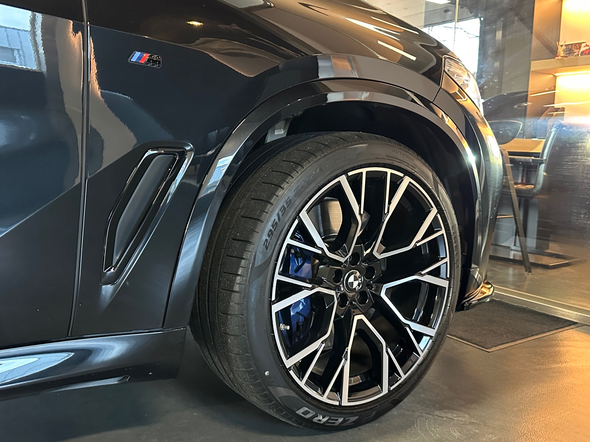 Voorzien van originele BMW X5 M velgen 22 inch t.w.v. 8000€ met Pirelli P zero banden.