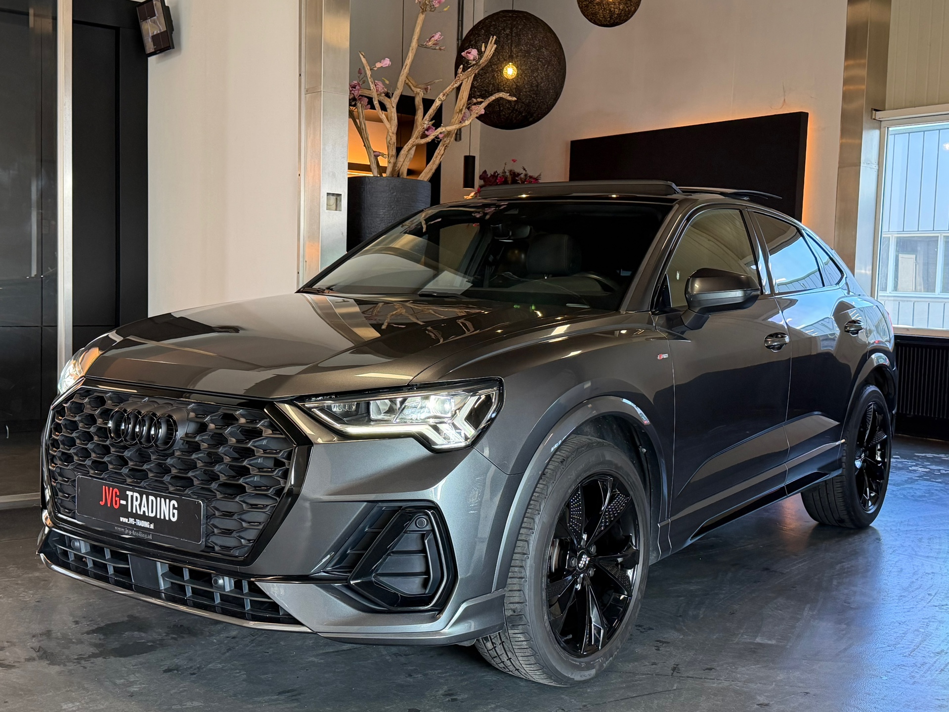 Unieke uitvoering met 3 X S line en Audi black package in de kleur Daytona grijs.